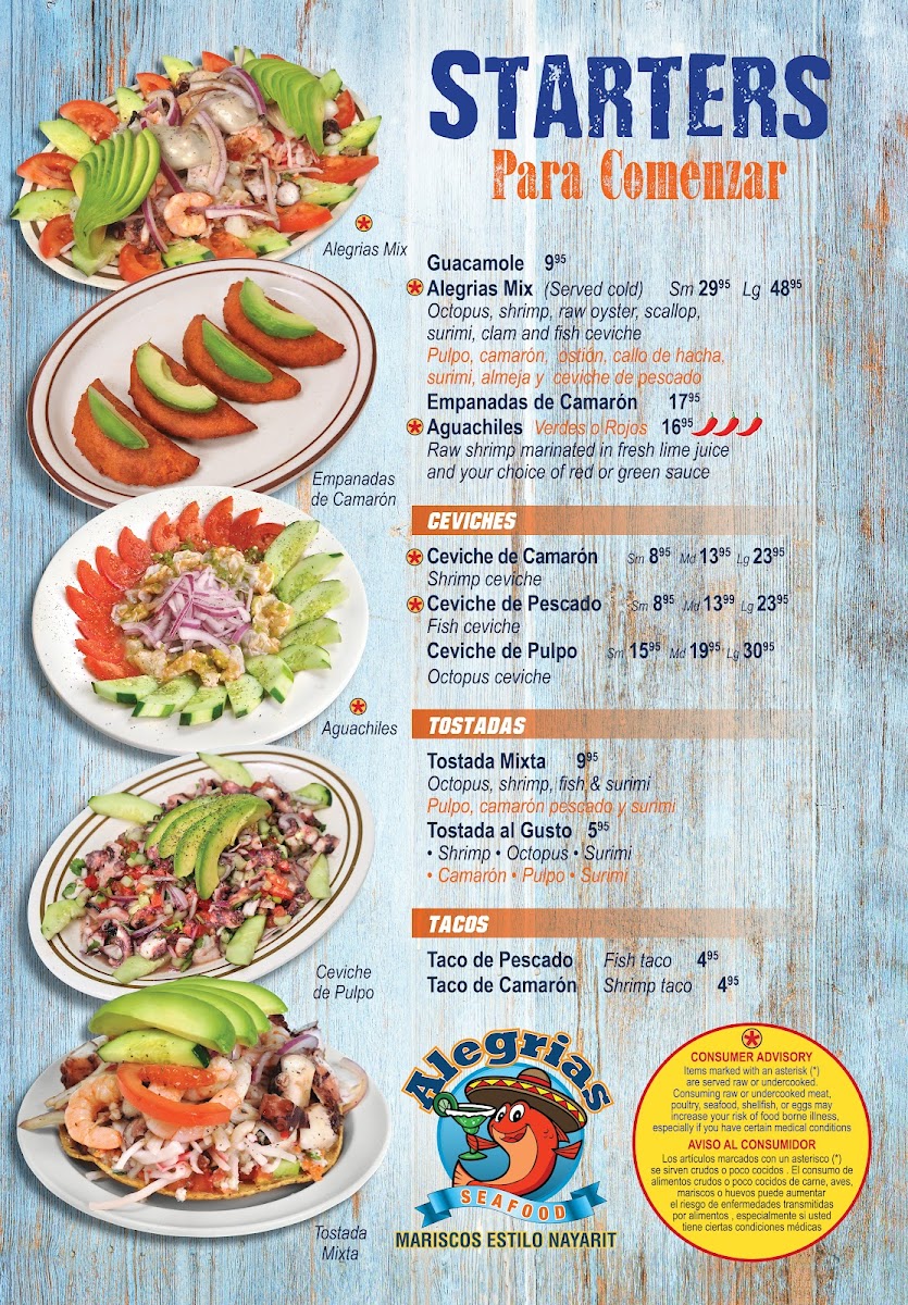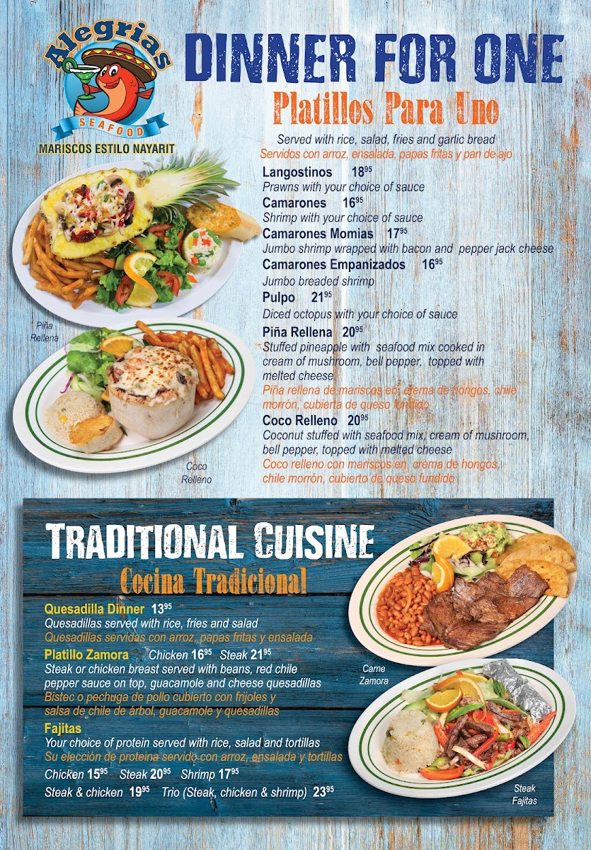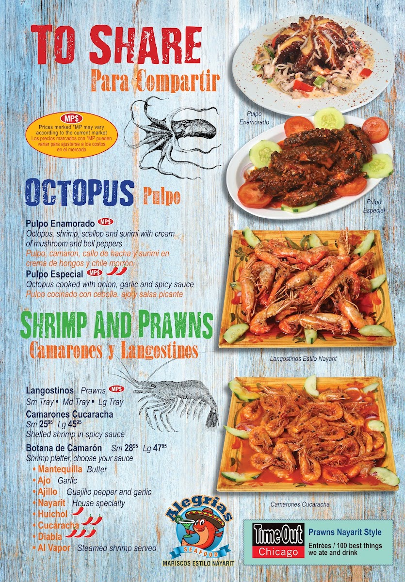 At Alegrias Seafood, you'll find a menu that's as vibrant and diverse as the city of Chicago itself. Alegrias Seafood Menu offers a delightful selection of dishes that bring the ocean to your plate with bold flavors and fresh ingredients. From tender fish tacos to flavorful shrimp cocktails, each item is crafted with care, bringing out the best of coastal cuisine. Whether you're in the mood for a savory paella or a light ceviche, there’s something to satisfy every craving. This is where seafood lovers can truly indulge, with every bite showcasing the finest catches available. Perfect for casual dining or a special occasion, Alegrias brings the best of seafood to the heart of Chicago.